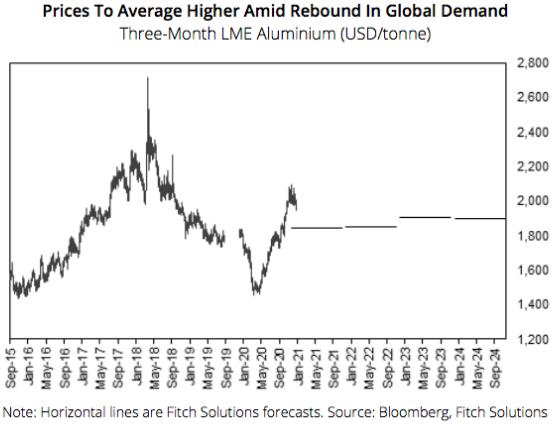 惠誉预测,2021年的平均价格将高于2020年,因为全球的绿色刺激政策支持铝在建筑和电动汽车装配中的使用。2020年,欧盟委员会(European Commission)将铝土矿列入其年度关键原材料清单。