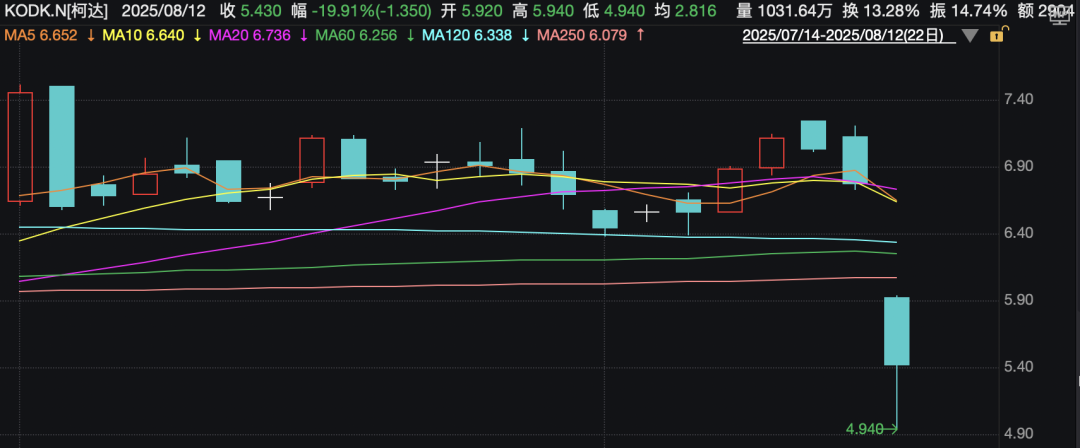 百年胶片巨头柯达大跌,公司在财报中发出经营预警。