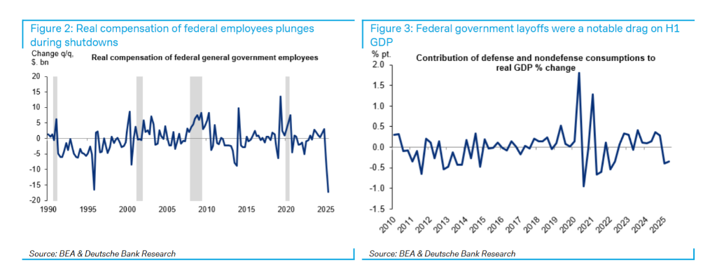 据追风交易台消息,德意志银行在9月26日发布的一份报告显示,虽然此次关门不会引发2013年那种迫在眉睫的债务违约恐慌,但其对经济增长的直接拖累、对关键经济数据的干扰,以及对特定金融工具的技术性影响,构成了投资者真正需要警惕的“隐形风险”。