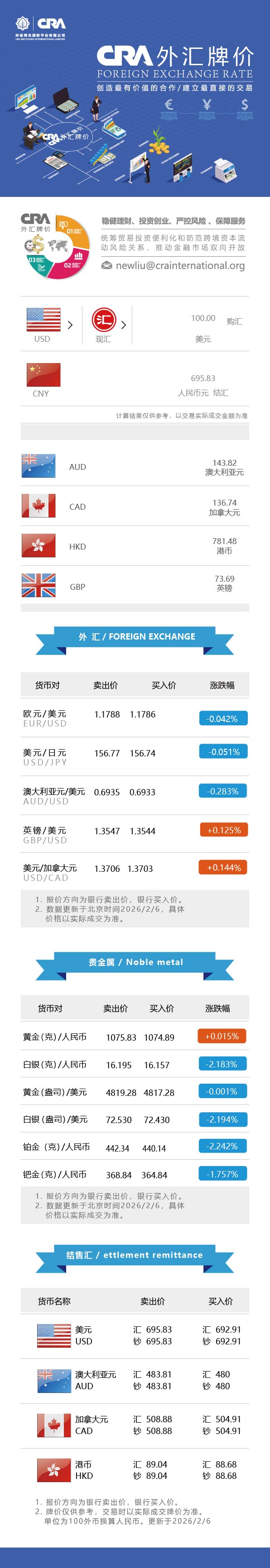 2月6日CRA贵金属及外汇市场价